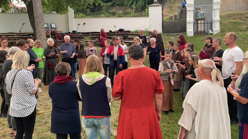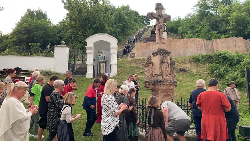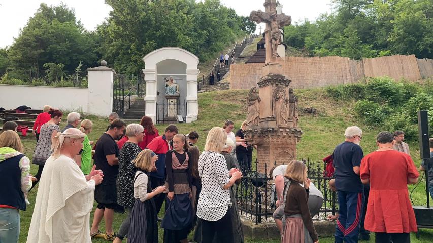 Az összetartozás - Trianon 102 évfordulóján 21 órai Magyarpolányi Passió előadás kezdete előtt 20 óra 22 perckor : a szereplők , öltöztetők, tecnikai és biztonsági szereplők kört alkotva ,mécseselkkel megálltak egy percre imáikat küldve az összetartozás és a béke megteremtéséért . A mécseseket elhelyezték a szobor talpazatánál ,amik az előadás közben es világítottak .