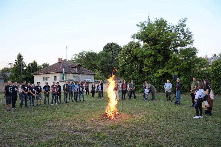 A tavalyi évhez hasonlóan, idén is a megemlékezés jegyében, alkalmi műsort fontunk a tűzgyújtás köré. 16:30-kor megkondultak a harangok, 19 órai kezdettel alkalmi szentmisét celebrált Zsúnyi Tibor szenttamási plébános, a helyi Szent Kereszt Felmagasztalása Templomban. Ezt követően sétáltunk át, a plébánia mögötti telekre, ahol majd Isten segedelmével megépül a helyi Magyar Ház. 20 órai kezdettel Németh Dezső a Gion Nándor Kulturális Központ elnöke köszöntötte a jelenlévőket. Helyi fiatalok révén elhangzottak Reményik Sándor versei, beszédet mondott Botka Csaba helyi ügyvéd, felszólalt még Berecz-Gaál Brigitta szervező és közösön elszavaltuk a Szózatot. Elérkezett az időpont 20:21-kor fellobbant a tűz. Amikor fellobbantak a lángok, közösen elénekeltük a Himnuszt. Ezt követte egy rövid néma csend, amelyet a parázs pattogása szakított meg, lélekben találkoztunk. 20:21-kor lélekben is találkoztunk, a világ magyarságával hiszen össze tartozunk!