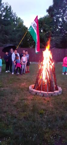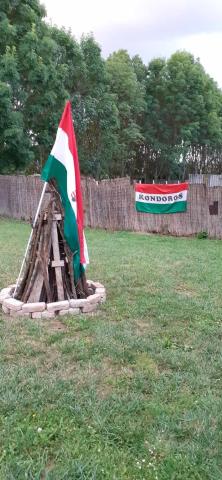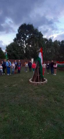 A Kondorosi Nagycsaládosok Egyesülete a Kárpát-medencei Családszervezetek Szövetségének tagja, így természetes, hogy minden évben megemlékezünk tűz gyújtással Trianonra. Vári Ferenc elnök köszöntőjét követően elénekeltük a Himnuszt, majd 20 óra 24 perckor meggyújtottuk máglyánkat, ami az idén szintén a béke vágyunkat is kifejezte. Elénekeltük s Székely Himnuszt is. Az eső szitált, de nem befolyásolta rendezvényünket - a tűz lobogott.